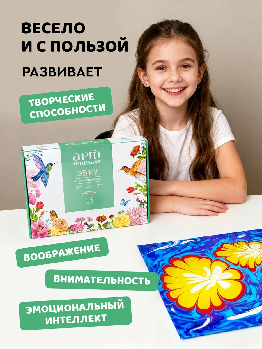10.12.2025Подарите волшебство рисования на воде! Наборы для рисования на воде ЭБРУ АРТформат – это художественный наборы, открывающий двери в мир волшебных рисунков прямо у вас дома! В комплекте все предметы, необходимые для погружения в удивительное творчество. Этот подарочный набор станет идеальным выбором для детей и взрослых, для малышей и девочек, а также для женщин, ищущих оригинальное хобби. Он развивает творческий потенциал юного художника, даря возможность создавать неповторимые узоры, напоминающие изящную расцветку зебры, или абстрактные композиции.